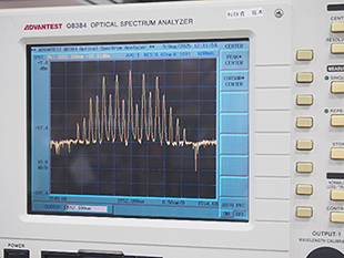 現在取り組んでいるのは、電気光変調器を用いて光コムを平坦化させる研究です。この装置のメリットは制御性が非常によいことにあり、狙った波長の強度の安定性を高めることができます。強度がバラバラだと信号品質が低下し通信には使えないので、より安定性の高い光コムを、安価な装置で実現することをめざし、実験を繰り返しています。環境要因など、様々なファクターで実験結果は変わりますが、どの部分が邪魔しているのかを想定し、自分のなかで組み立てて実験に臨みます。それがうまくいったときの達成感がモチベーションになりますね。