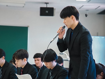 ディベート大会の本番では、かつてないほどの緊張だが、力を合わせて闘う。